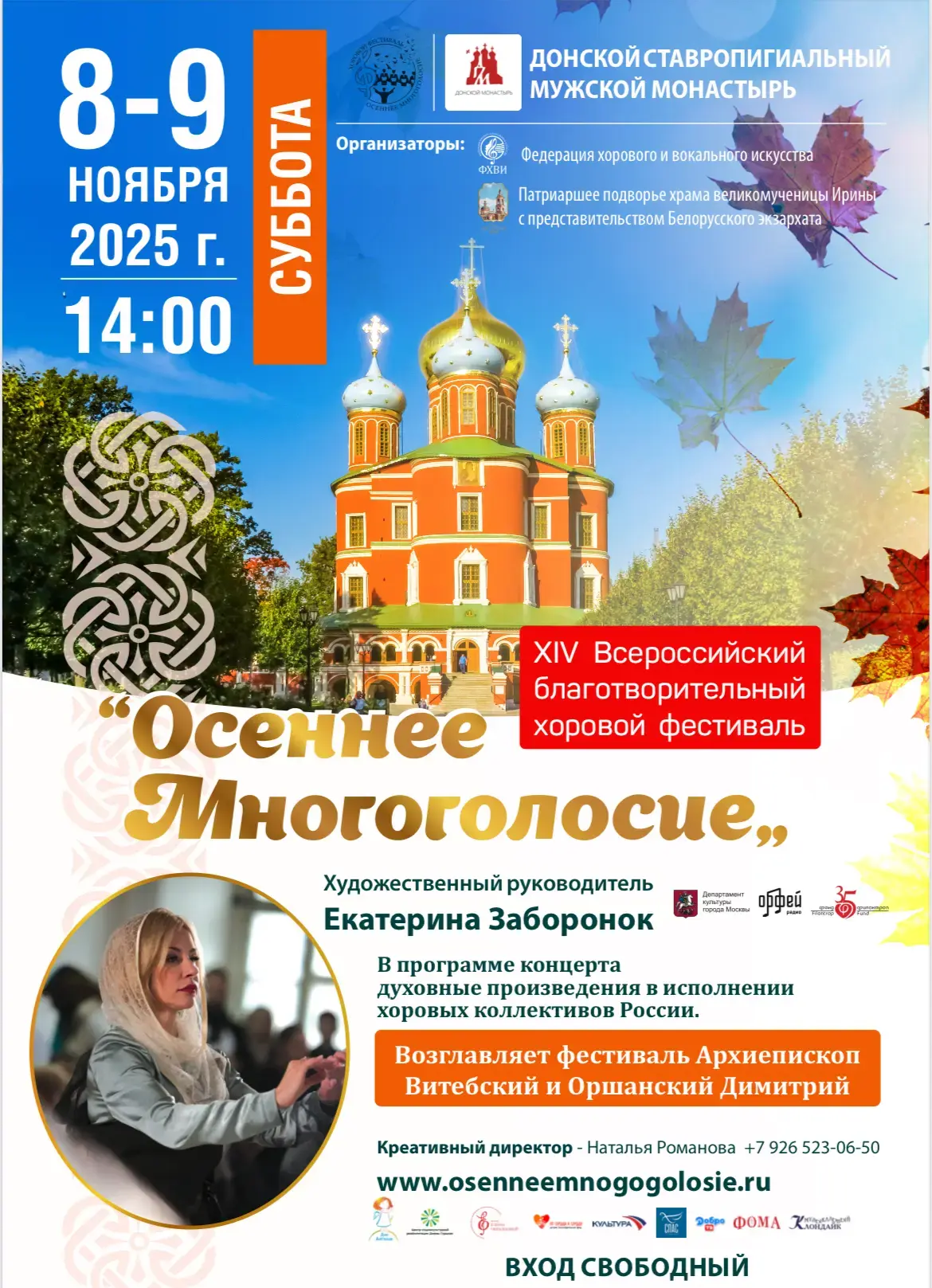 🎼 С 1 ноября по 12 декабря в Москве пройдет масштабный XIV Всероссийский благотворительный хоровой фестиваль «Осеннее многоголосие», в котором примут участие десятки хоров и тысячи участников из России и Беларуси.